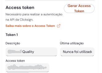 O Access Token gerado precisa ser enviado para o Sistema Quality. Através dele que a autenticação a API da Clicksign será realizada e o acesso liberado.