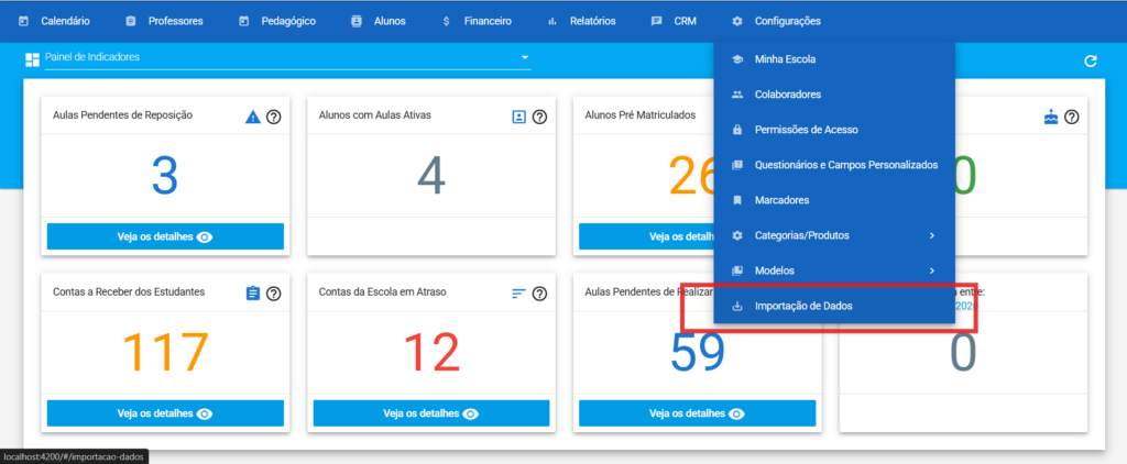 - Com a permissão habilitada, acesse a tela de Importação de Dados em Configurações > Importação de Dados.